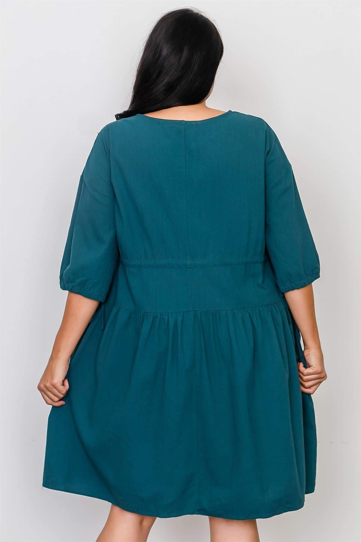 Plus Size Black Tie Sleeve Loose Midi Dress