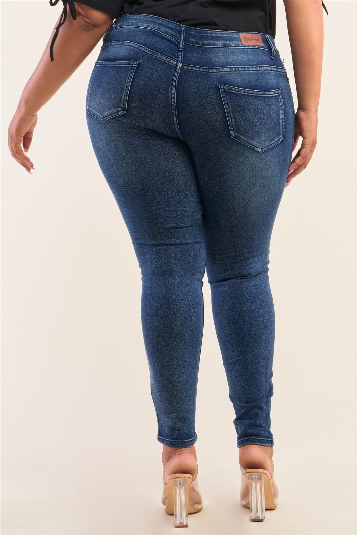 Plus Size Dark Blue Low-rise Ripped Denim Pants